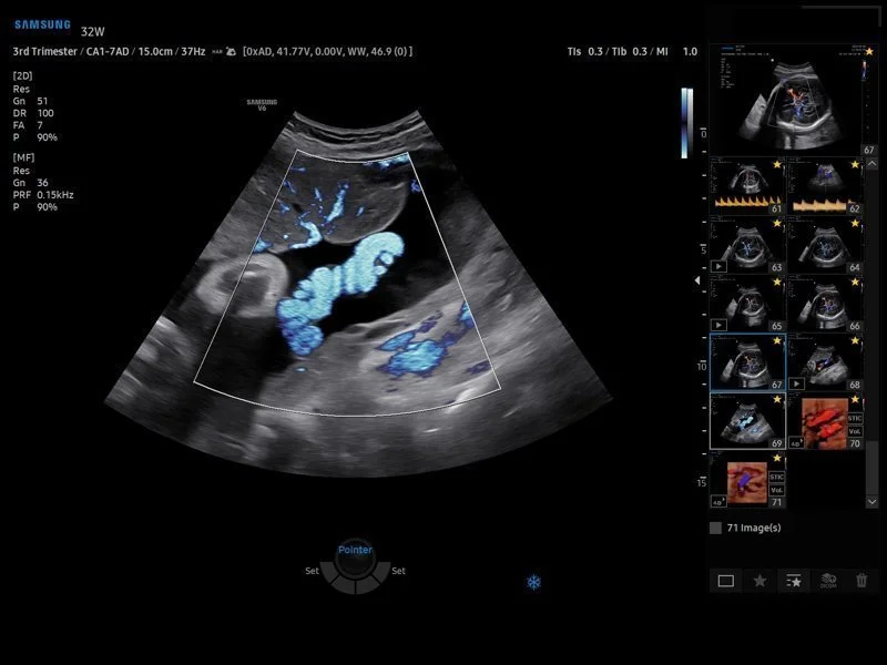 • Многофокусная обработка сигналов, программа управления данными пациентов, программ поиска данных по индексам, автоматическое и ручное составление протоколов и отчетов, форматирование отчетов с добавлением изображений, программы для расчетов в акушерстве — для первого, второго и третьего триместров, гинекологии, исследований сердечно-сосудистой системы плода, ангиологии, органов брюшной полости, щитовидной и молочной желез, суставов, тазобедренного сустава новорожденного;